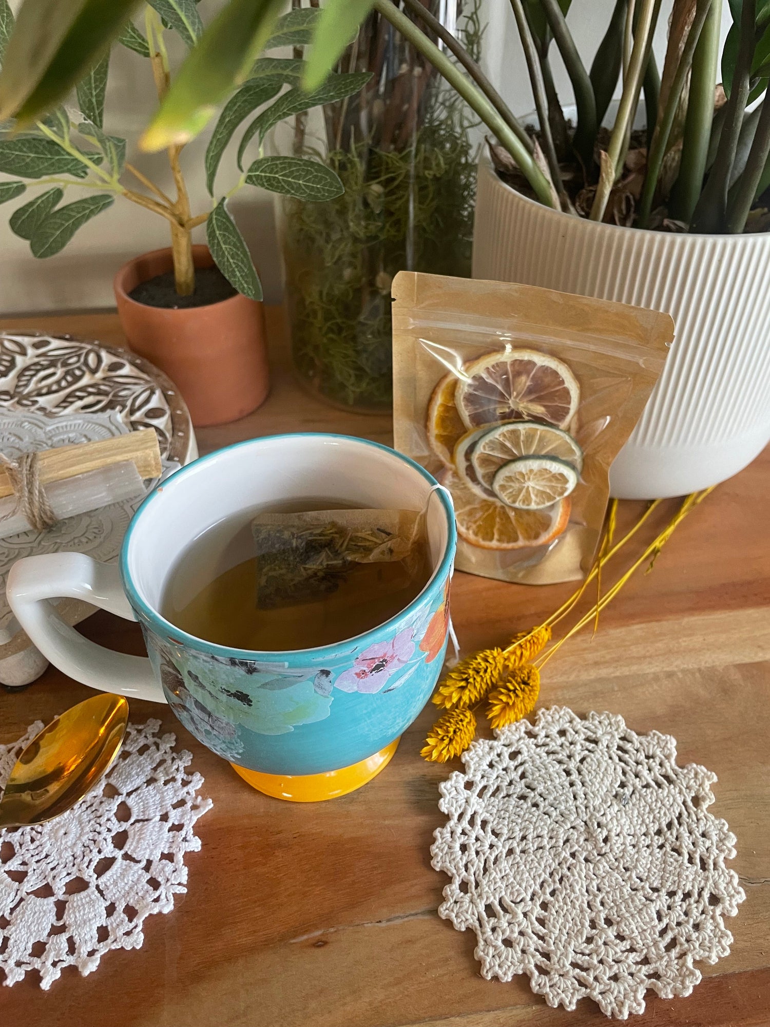 From soothing chamomile to invigorating ginger, each of our handcrafted blends is designed to not only tantalize your taste buds but also nurture your body and soul. Made with love and care, our teas are like a warm hug in a cup, ready to embrace you and uplift your spirits.